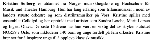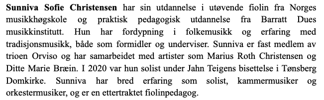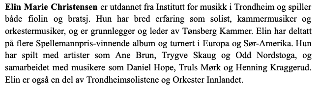 “En fantastisk konsert! Dere trenger faktisk ikke invitere noen, dere er jo minst like gode og vel så det som de veldig gode gjestesolistene vi møter i Tønsberg Kammers konserter.”